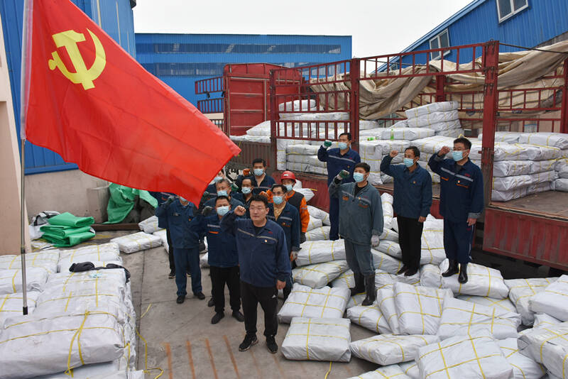 “我志愿加入中国共产党,拥护党的纲领,遵守党的章程,履行党员义务......”在充填隔离布到货卸车转运的现场,该公司十一家党支部的支部书记收到微信工作群的关于开展主题党日活动的通知后,迅速集结成立志愿服务队伍,在“一二…”的整齐号子声中,步调一致、高效配合,短短不到两个小时的时间,圆满完成每包80斤,共计664包隔离布的卸车、转运、码放任务。