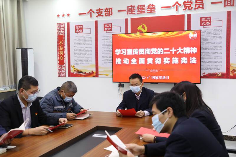 本次活动采取线下悬挂宣传条幅、播放宪法知识宣传视频,线上在微信公众号、微信群、学习强国等媒体平台学习,教育引导干部职工学习党的二十大精神,学习宪法、民法典等关系职工切身利益的法律法规,使干部职工牢固树立法治意识,自觉知法、懂法、守法、用法。