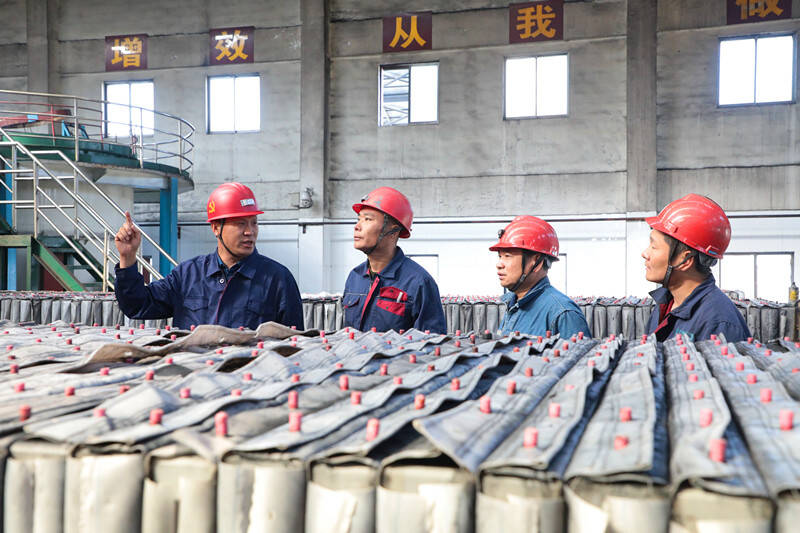 (洗煤厂技术人员在研讨改进洗煤工艺)