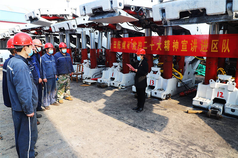 进区队、进班组、进岗位,一场场形式多样、生动鲜活的宣讲在田陈煤矿全矿上下掀起了学习贯彻党的二十大精神的热潮:往深里走、往实里走、往心里走,一次次别开生面的思想交流让广大干部职工在学思践悟中汲取智慧力量、补足“精神之钙”;知行合一、学用结合、学以促干,一句句信心百倍的话语传递着田陈人踏上新征程昂首再出发的豪情壮志。
