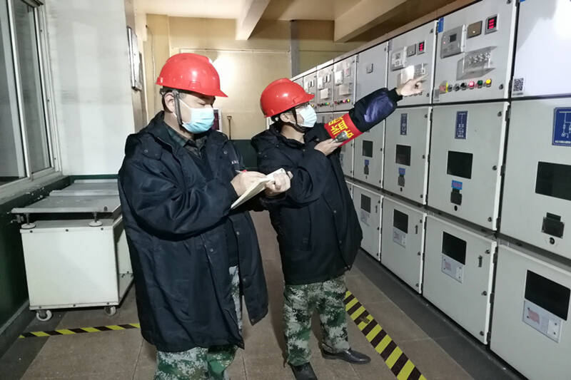 (群监员在检查设备安全运行状况)