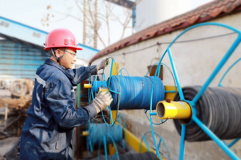 (职工在整理回收复用的信号线)