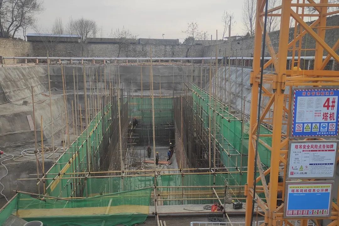 储配煤基地八一站点火车翻车机基础筏板长29.5米、宽7.7米,最大浇筑高度3.2米,需要一次性浇筑460m³混凝土,技术难度非常大。浇筑前,项目团队积极进行技术攻关,多次开展方案论证,采取调整混凝土配合比和底板预埋降温管技术,利用循环水方式对内部降温,有效降低了混凝土中心温度和内外部温差,保障了混凝土浇筑质量。