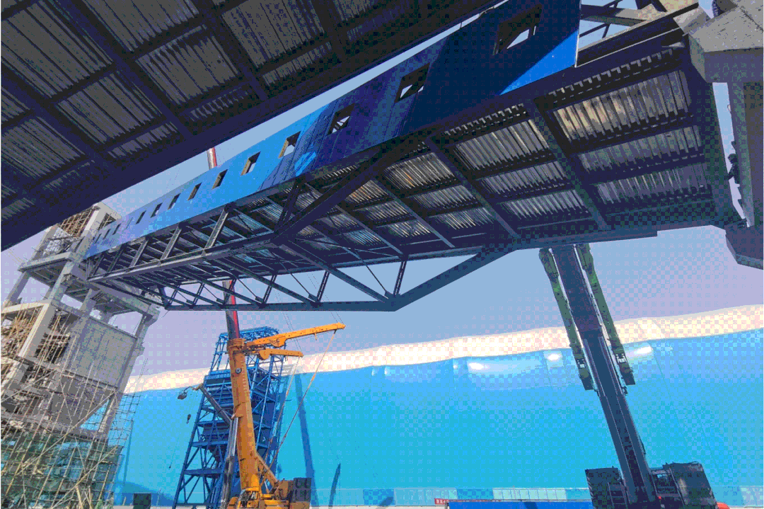 配煤基地联创站点项目建设结合工期和现场条件,创新采用分段整体吊装法,与传统吊装工艺相比,减少了高空作业,提升了焊接质量,提升了安全系数,减少了施工成本,缩短了施工工期。