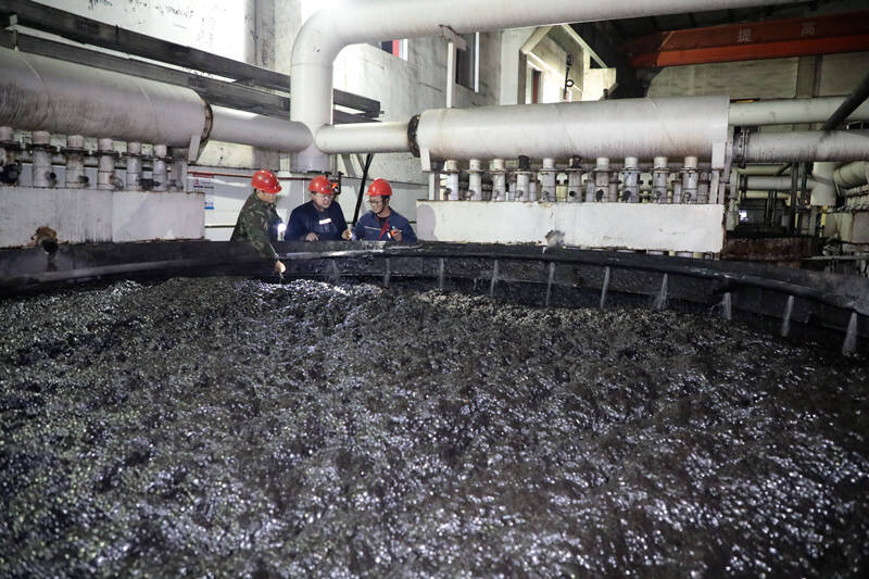 (洗煤厂技术人员在现场研究洗煤工艺)