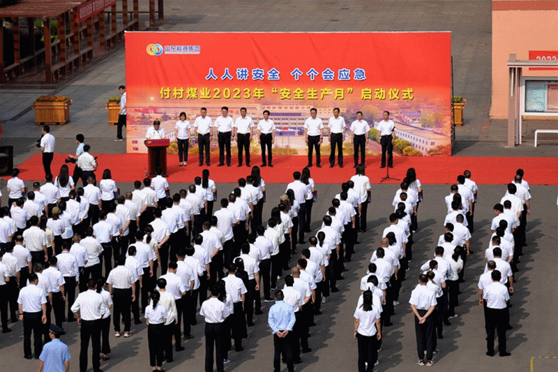 为树牢安全发展理念,强化安全生产责任落实,提高全体职工安全生产意识,6月1日上午,枣矿集团付村煤业隆重举行2023年“安全生产月”暨职工技能大赛启动仪式,拉开了“人人讲安全、个个会应急”为主题的“安全生产月”活动序幕,吹响了安全生产的集结号角。