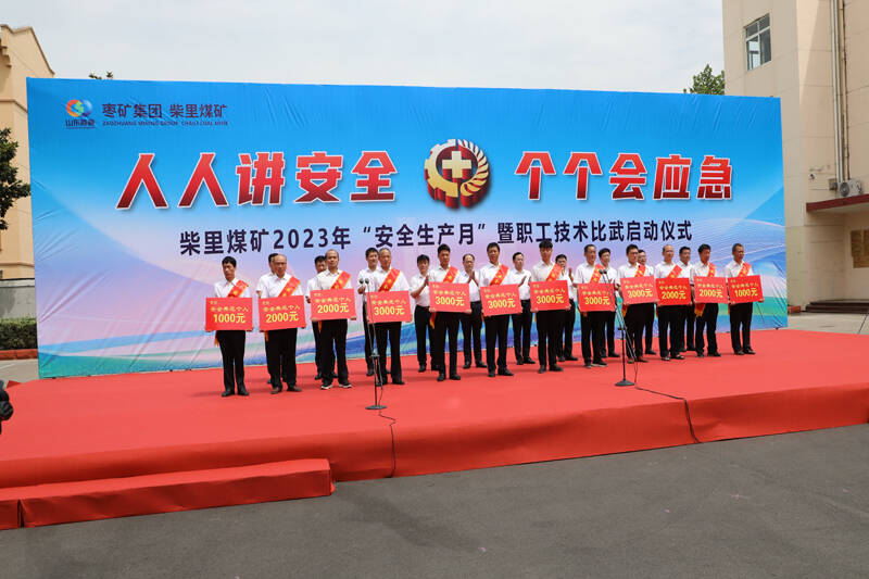 在启动仪式现场,宣布表彰综采二区、综掘一区、皮带工区等3个2023年度“安全功勋区队”,分别奖励5万元、3万元不等;表彰综采二区生产一班、充填开采工区生产检修班、综合工区回撤班等10个“安全诚信班组”,分别奖励6000元、5000元、3000元。