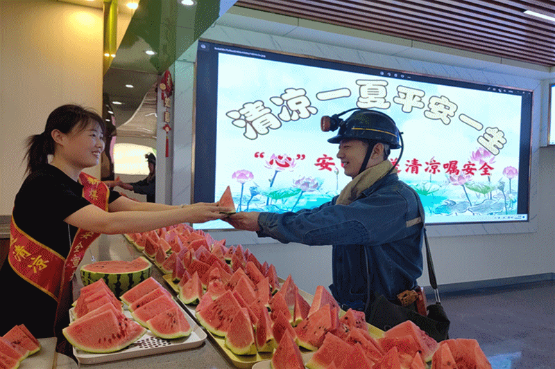 “师傅,你们在井下工作辛苦了,吃块西瓜吧!工作中一定要注意安全啊……”6月14日,在新安煤业井口温馨驿站,该公司工会开展了清凉一夏、平安一生“心”安巾帼送清凉嘱安全活动,女工协管员热情地为刚上井的师傅们送上清凉可口的西瓜,一边不忘叮嘱职工师傅注意安全。