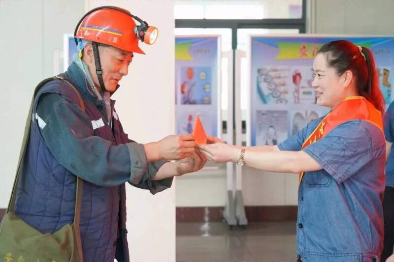 (女工安全协管员在井口大厅开展送清凉嘱安全活动)