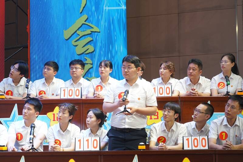 随着主持人流利而充满激情的话语响起,比赛正式开始。第一关必答题环节,选手们纷纷开展“脑力风暴”,认真聆听并回答每一道题。只见他们个个准备充分、回答准确,每支队伍都展示出非常扎实的知识储备,第一个环节结束,参赛队伍比分咬得非常紧。