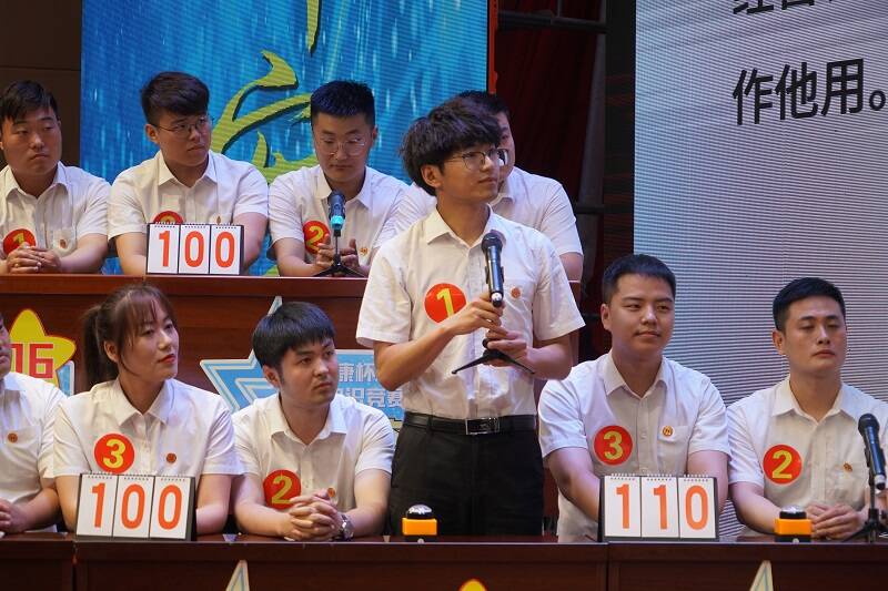 第三轮抢答题环节更加紧张激烈,不仅要对知识掌握程度进行考验,更要求选手耳聪手快,听得准、按得快、不犯规。选手们积极争夺答题权,领先队伍不敢松懈、扩大战果,暂时落后队伍毫不气馁、奋起直追。就在几支队伍频频出现抢答犯规时,14号代表队果断出手,多次夺得答题机会,其他队员也相互配合给出了正确答案。
