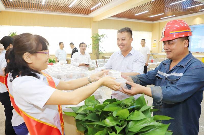该矿工会工作人员深入副井口温馨驿站、区队班前会、车间等地点,将节日的祝福和充满爱意的粽子、鸡蛋、牛奶、西瓜等送到职工身边,嘱托他们要时刻想着安全,牢固树立“安全第一”的思想,上标准岗、干标准活,做到人在岗、心在岗。