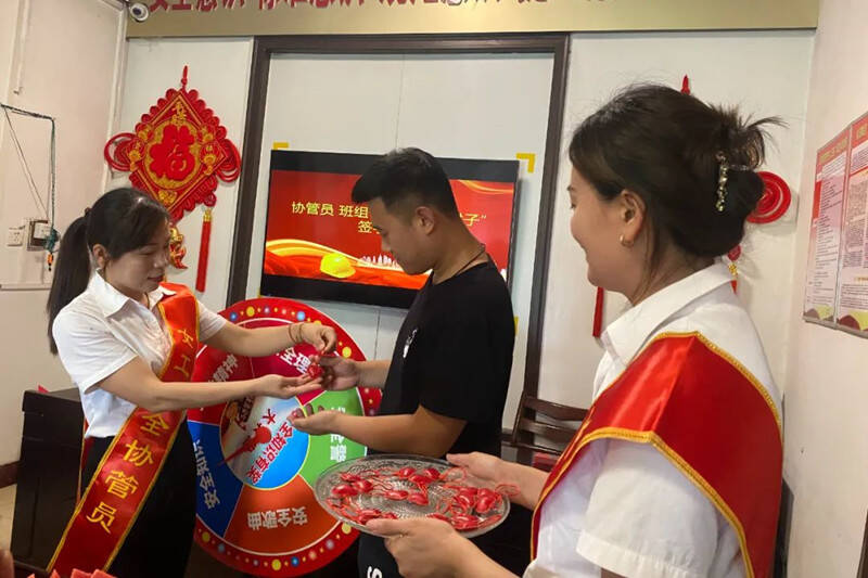 活动现场,协管员着力提高“三违”帮教“精准度”,与生产班组结成对子、建立联系点,并签订安全互保承诺书。每季参加一次区队安全活动会,定期组织开展为职工送清凉、缝补衣服、洗床单等活动,用亲情感化职工抓好安全生产。