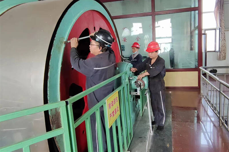 在田陈煤矿副井绞车房,运转工区职工坚守在工作岗位上,对提升运输设备进行全面认真检查,及时排除设备故障隐患,保证设备运转的可靠性和安全性。