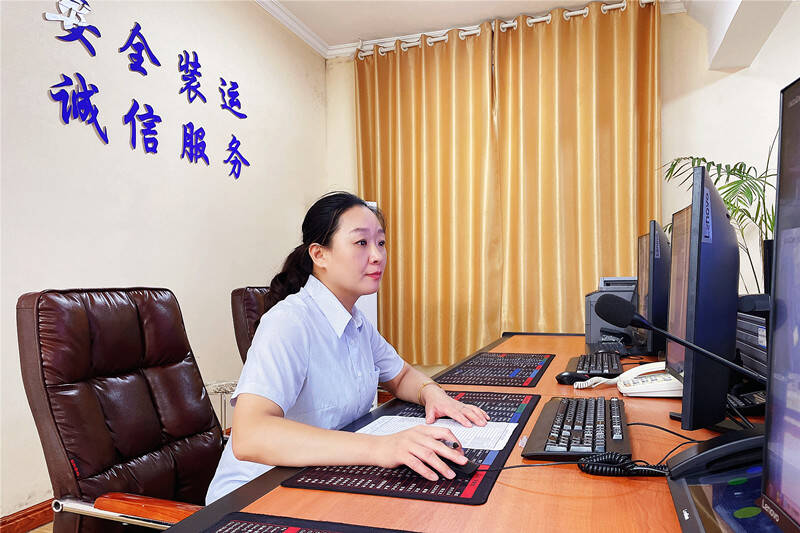 运销科司磅员李娟像往常一样,早会结束后便走向集控室,打开电脑,登录MES系统认真仔细地查看当天发运通知单,并根据发运计划做批次。随后,她有条不紊地把车辆与客户信息绑定设置好,通知煤场监管人员进车装载运煤,一天紧张而繁忙的发运工作就这样开始了。