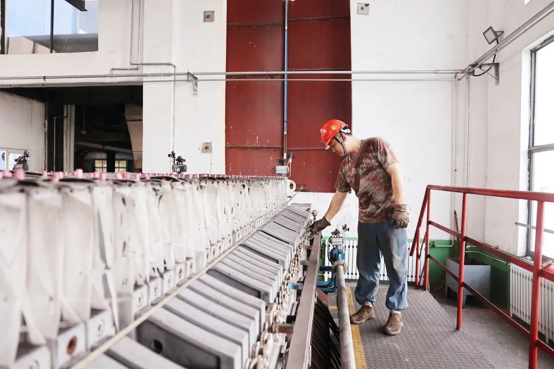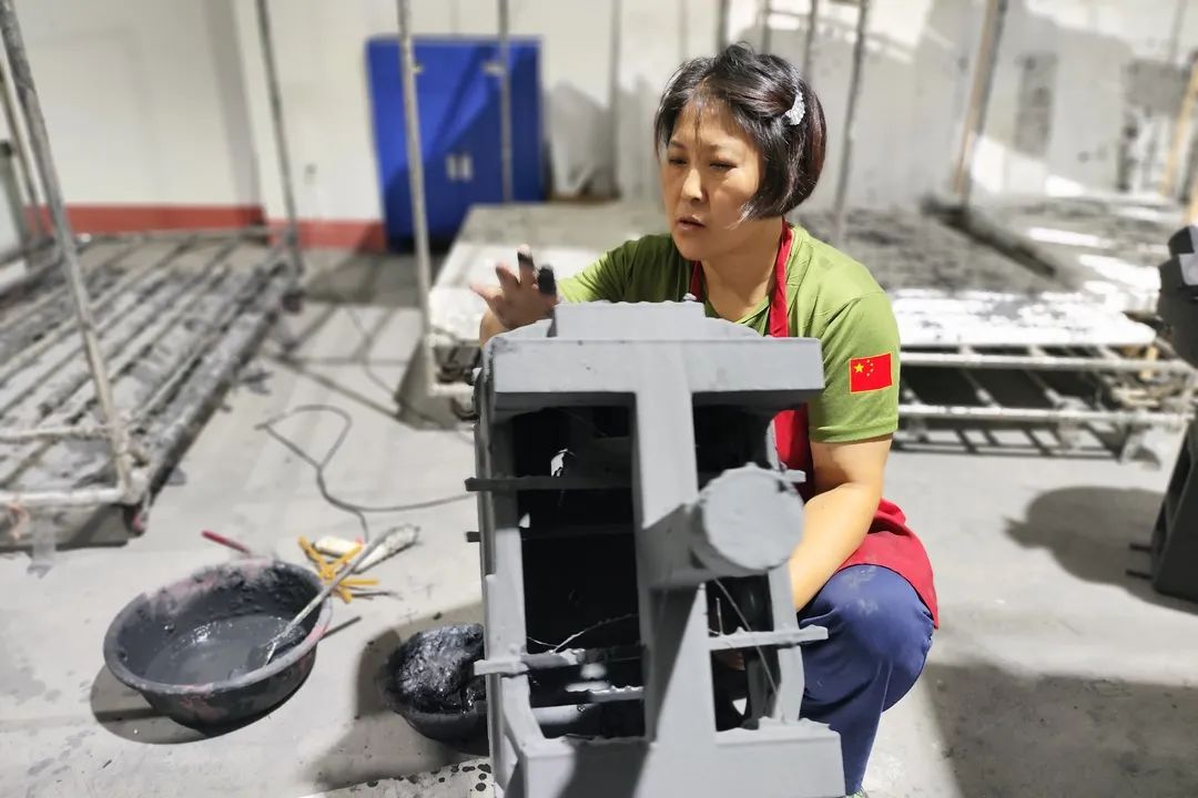 柴里煤矿精密铸造厂职工假日期间坚守自己岗位,加班生产铸件。