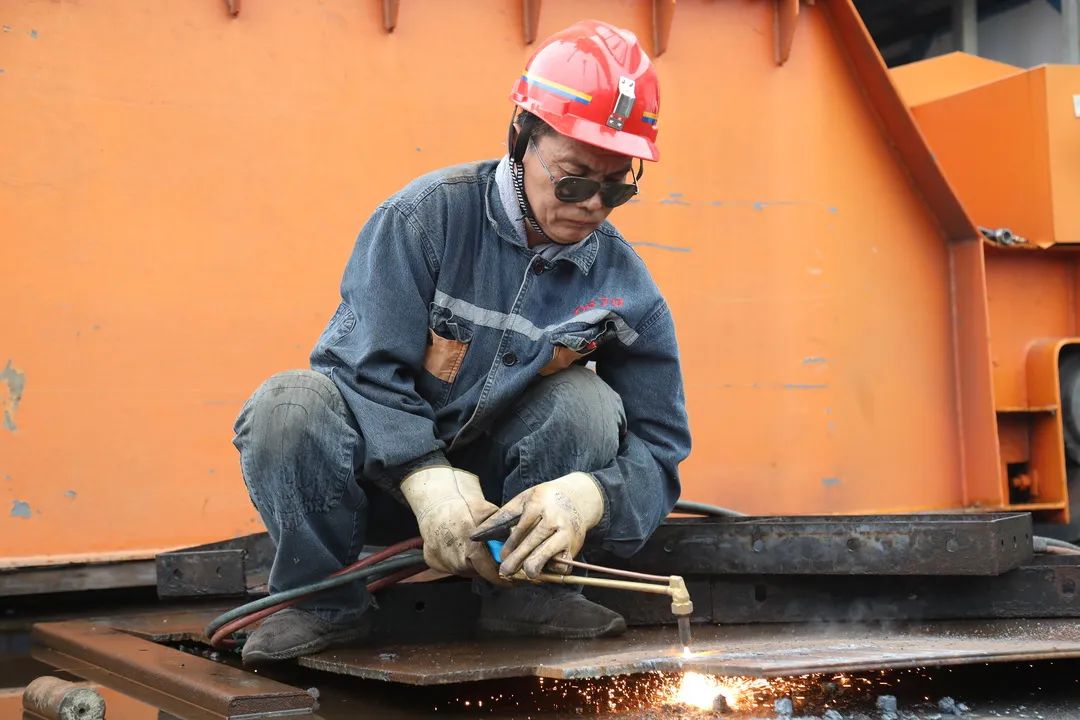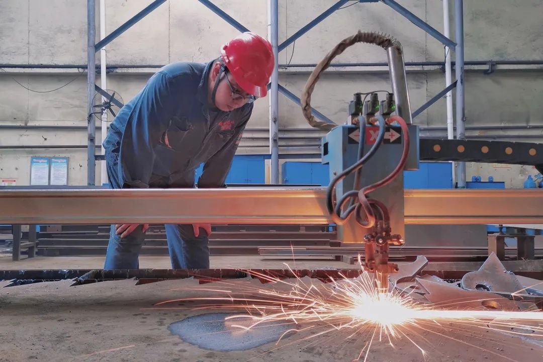 蒋庄煤矿机修厂铆焊车间内,员工周昊正在操作数控切割机运行,用坚守诠释责任担当,深情告白祖国。