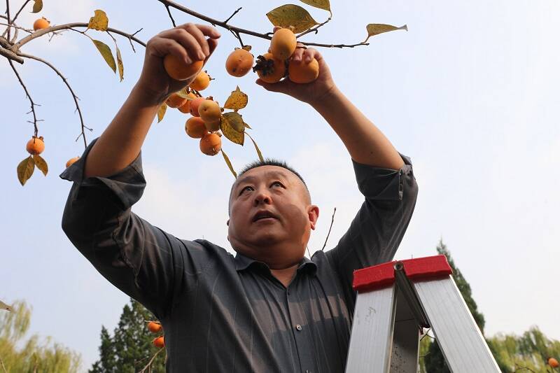 (职工在采摘柿子)