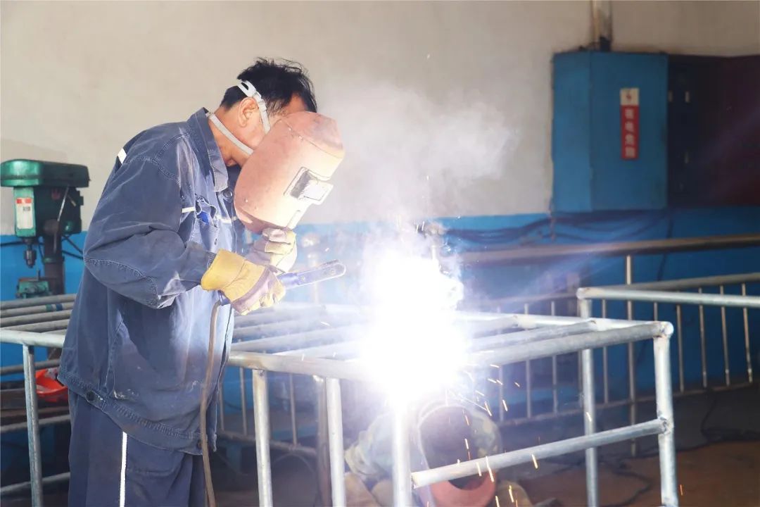 只见机器轰鸣、焊花飞溅