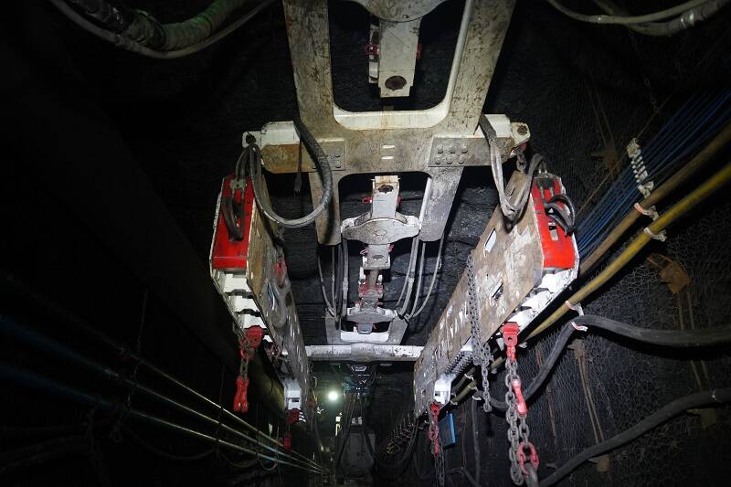 针对此,三河口矿业公司在13下07工作面引进TSQ-32T新型单轨吊超薄起吊梁,搭配井下四通八达的单轨吊运输环网,操作人员只需按下手中的遥控器,就可以实现液压支架在井下整体运输,极大缩短了井下安装工期,能够提前20天让采煤工作面投入生产。