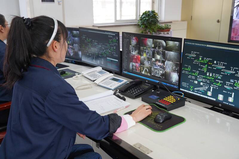 蒋庄煤矿矿在北十、北翼建设了智能煤流控制系统,利用AI摄像头识别煤流大小,根据煤流量的变化,自动调节带式输送机运行速度,并结合雷达物位仪,根据仓位自动启停带式输送机,从而达到节电的效果。