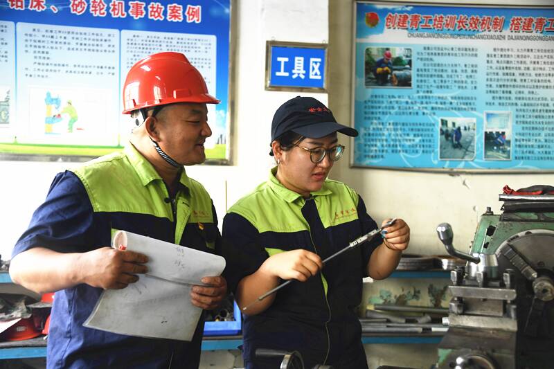 车间里,焊花闪烁。贾秉玉带着徒弟杨菊焊接刮板钢,他手里拿着耐磨焊条:“这焊条得选和刮板钢匹配的材质,分段焊才不会变形,焊完再打磨平整,跟新的一样。”职工杨福滨凑过来,指着刮板钢说:“以前这玩意儿磨损了只能整根换,一根500元,3个人换一次得半天。现在修修能用20个月,比以前多‘活’一年!”