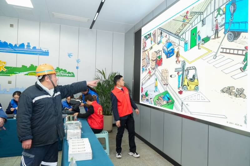 舌尖上的温暖最抚人心。井下采掘工作面的“暖心餐点箱”早早就备好了,跟班政工干部扛着保温桶送到掌子面,“来,兄弟们,喝口热姜糖水驱驱寒!”地面井口的“能量补给站”前排起了队,刚洗好的苹果码得整整齐齐,贴着手写的“今日份温暖已送达”,咬一口甜到心里。趣味互动里藏着安全“干货”!看图查隐患环节,职工们凑着屏幕仔细瞅,“这电缆拖地了!”“支护少了一根锚杆!”答对5题的张师傅拿着“安全达人”证书,举着保温杯笑得开心。安全知识答题区更热闹,“瓦斯爆炸三条件是啥?”“浓度、火源、氧气!”师傅们举手抢答,拿到安全主题钥匙扣立马挂在矿灯上。最燃的当数拔河比赛,“高煤先锋代表队”和“高煤后盾代表队”攥紧绳子往后拽,旁边亲情连线屏幕上,家属们扯着嗓子加油,“注意安全!使劲儿!”现场喊号子声、欢呼声此起彼伏,把大厅的气氛烘托得热热闹闹。