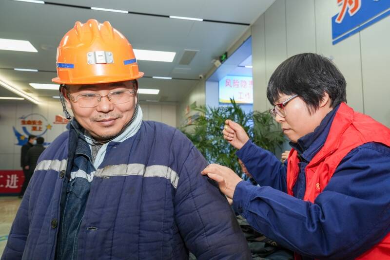 党徽亮在井口,温情守护平安。“李师傅,存放柜电池换好了,拿取工作服方便多了!”换电池专区里,志愿者边忙活边登记台账。缝补台前,几位女职工正在穿针引线,“王师傅,您这袖口磨破了,我多缝两道更结实,作业时记得戴护袖防刮擦。”绣着“平安归来”的工装领标,让师傅们直呼“贴心”。