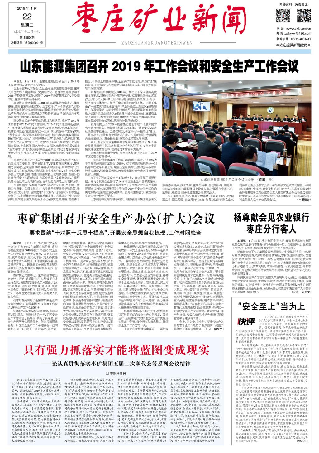 《枣庄矿业新闻》第3880期