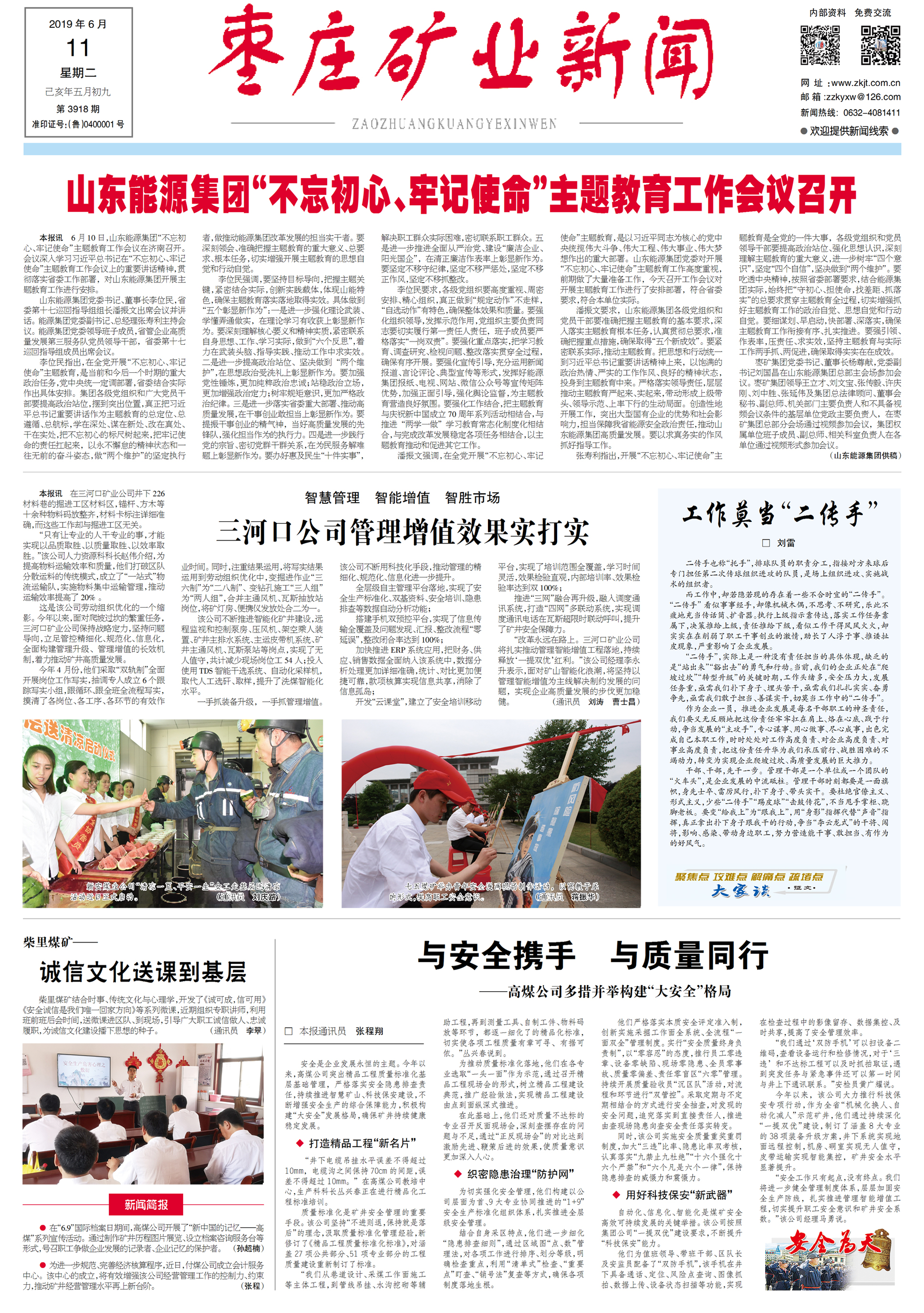 《枣庄矿业新闻》第3919期