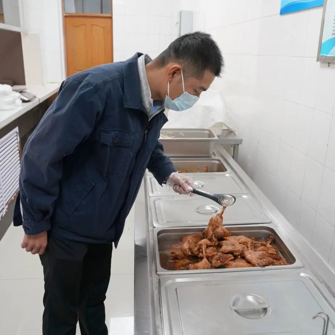 食材采购严格执行“供应商资质审核+索证索票+农残检测”三重把关机制,仓储实行分区存放、先进先出,加工留样严格落实“双人核对、全程溯源”;每周开展2次“四不两直”突击检查,后厨实行“明厨亮灶”,实时公示操作全过程,餐具100%消毒,让职工吃得放心、吃得安心。