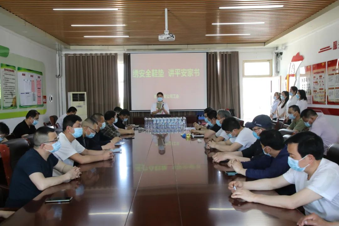 “亲爱的职工朋友们,为了生命、为了家庭,让我们铭记血的教训,牢固树立安全生产意识,时时刻刻注意安全,时时处处确保安全,……”5月18日,新煤公司工会女工委走进机电综合工区班前会,开展“绣安全鞋垫,讲安全家书”活动。