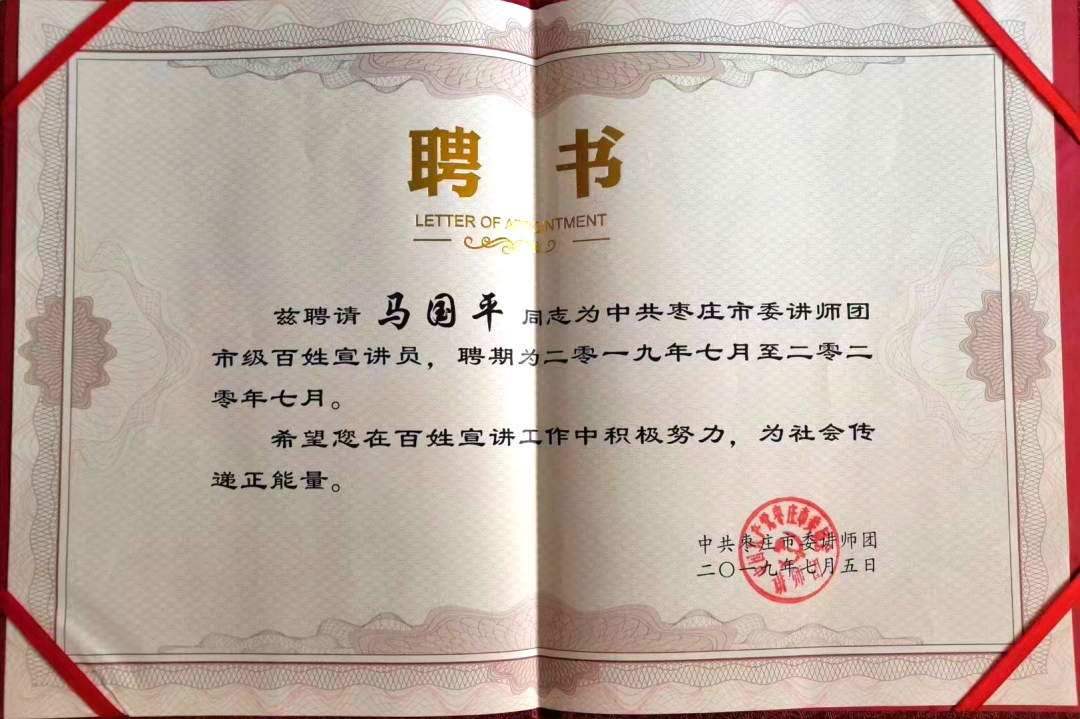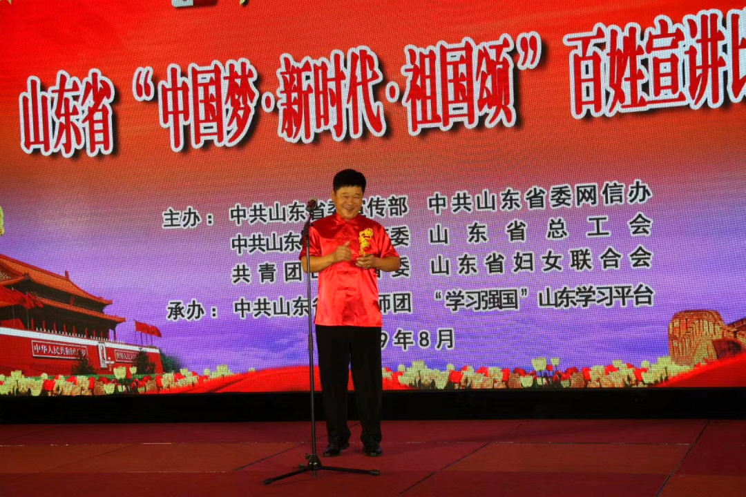 他能演会写,善于将身边的人物和故事用山东快书这种曲艺形式展现出来,他创作表演的山东快书《税官巧退礼》荣获山东省委宣传部主办的“中国梦 新时代 祖国颂”百姓宣讲比赛曲艺类三等奖,其表演的节目《一张罚款单》先后荣获枣庄市市委宣传部主办的“中国梦 新时代 祖国颂”百姓宣讲决赛中曲艺类三等奖、山东能源集团庆祝新中国成立70周年“百姓宣讲”类一等奖,并同时被聘为枣庄市市级百姓宣讲员、山东省省级百姓宣讲员。