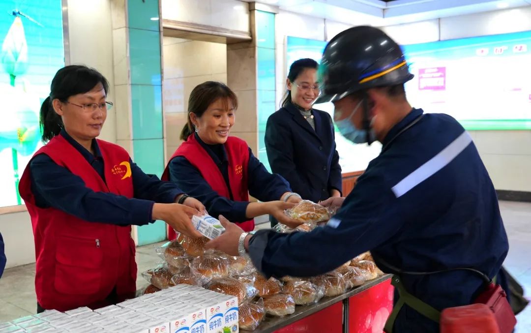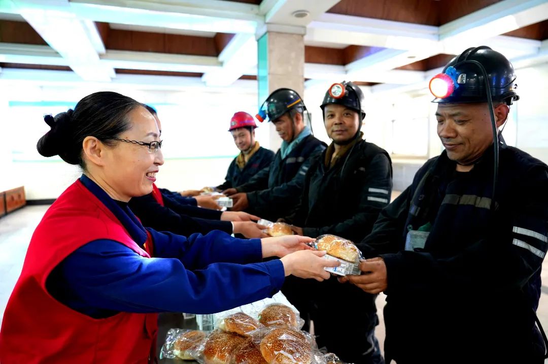 在宣讲的同时,煤矿工会还为采掘一线职工送上了“娘家人”的关怀,由面包和牛奶组成的营养早餐和安全生产嘱托一同交付到下井职工手中,寓意注入了健康和力量的“强心剂”,为职工的工作和生活注入了新的动力。