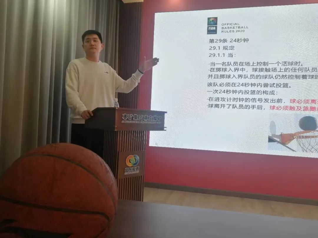 为丰富广大职工的精神文化生活,为提升职工综合素质,推动矿井文体活动的健康发展。近日,蒋庄煤矿工会特邀枣庄市篮球协会裁判中心主任、国家一级裁判员刘瀚阳老师,为来自全矿各基层单位40多名裁判人员、工作人员、篮球运动爱好者们进行了篮球知识专题培训。