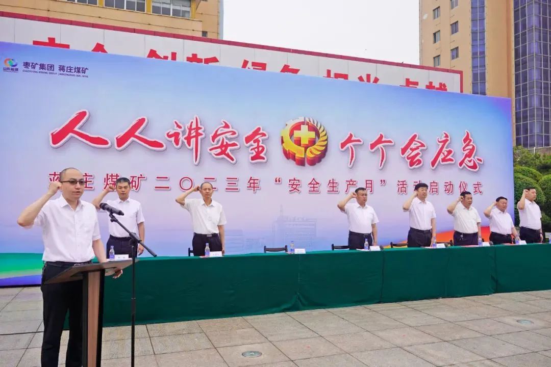 为引导职工树牢安全红线意识,进一步夯实安全生产基础,在全国第22个“安全生产月”到来之际,蒋庄煤矿隆重举行以“人人讲安全、个个会应急”为主题的“安全生产月”活动启动仪式。该矿班子成员、相关部门负责人及来自井下采掘、辅助单位和地面单位的百余名干部职工齐聚一堂,共赴一场安全“盛宴”。