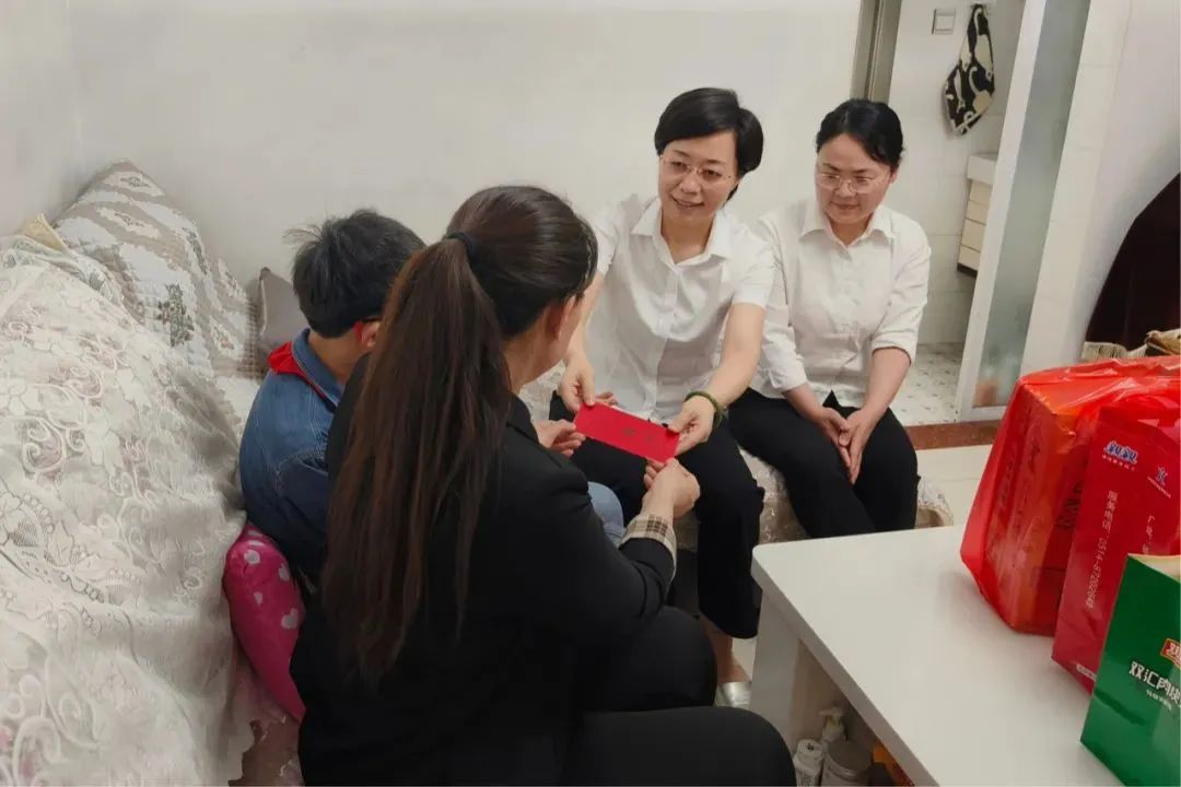 随后,一行人分别到物业管理站三供工区、洗浴中心职工家中,与其家人及子女亲切交谈,详细了解他们的学习情况,并送上慰问品、助学金,勉励他们不断汲取知识、开阔眼界,努力拼搏、勇敢前行,努力做对社会有用的人。