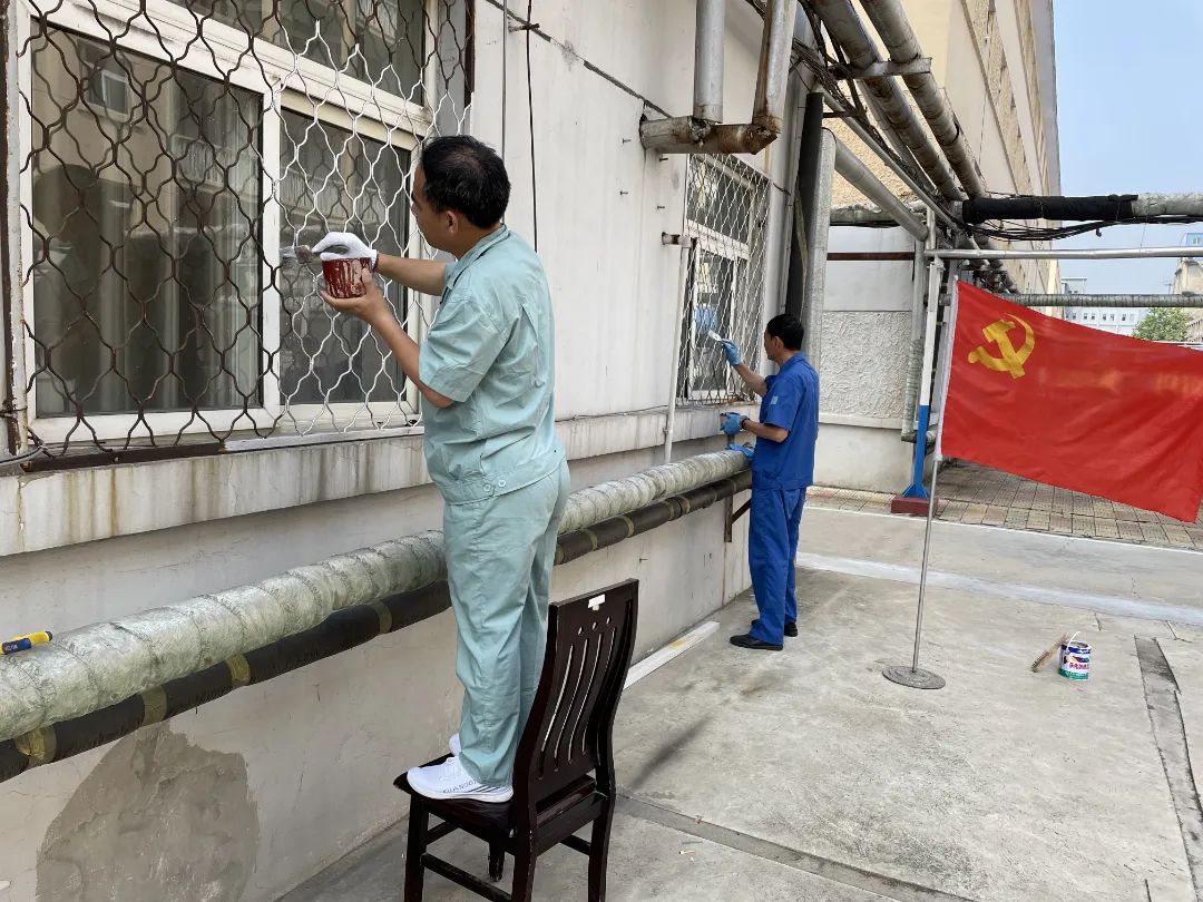 住宿“七彩家”。在煤矿,环境、条件、设施、服务这些物业后勤工作事关职工的休息生活,民生无小事。馨园公寓作为职工住宿的家园,投用至今,多数宿舍门漆掉落、起皮、褪色,卫生间长期处于潮湿环境中,水箱生锈,健身器材之前美丽鲜艳的“彩衣”所剩无几,只剩下斑驳的锈迹,地面安全标线因长期裸露在外,经过长时间的日晒雨淋及积灰,很多地方出现油漆起壳掉色等现象。用心写“民情日记”是为职工办实事的第一步,而落实好“民情日记”才是关键所在。为了改善现场环境,提高职工满意度,馨园公寓党支部没有外包人员粉刷,成立了“党员突击队”,党员主动承担了此项任务,一起当起了“粉刷匠”,大家用五颜六色的油漆把宿舍门、地面标线、健身器材、各种管道重新粉刷了一遍,健身器材焕然一新、地面标线清晰可见,同时对卫生间水箱进行除锈粉刷,为矿井内和谐生活画面再添一道风景,每个温暖的小细节都充满着物业人自心间流淌出的责任感与使命感。在这里,职工诉求得到满足,拉进了党群距离,“有困难找组织,有困难找党员”的呼声在职工群众间传递。