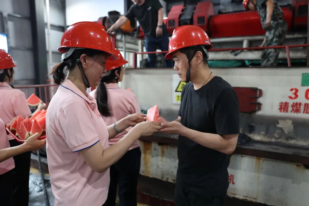 “今年的西瓜真甜呀!”“大热天,一上井就能吃到这么甜的西瓜,真是太幸福了......”不管是在井口大厅,还是车间、班组总能听到职工们赞不绝口的称赞。