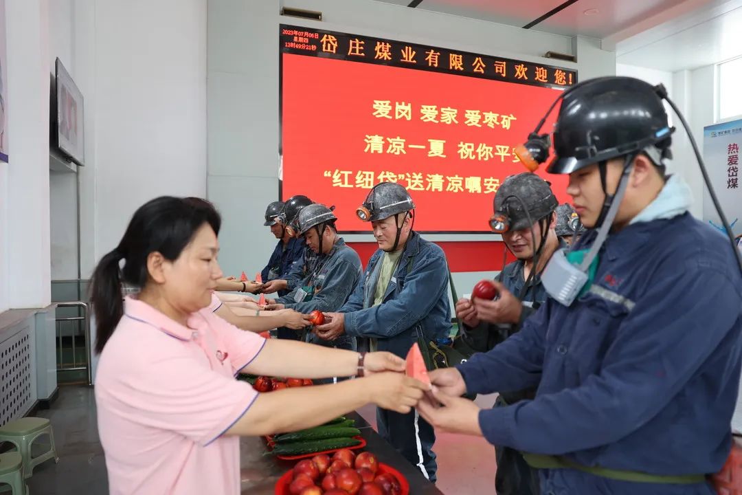 据悉,“红纽岱”送清凉活动将持续整个夏天,女工协管员们将根据天气情况,不间断地进井口、车间、班组,为职工们送上西瓜、油桃、黄瓜及绿茶、柠檬水、雪糕等防暑降温食品,让职工们健健康康的度过清凉一夏。