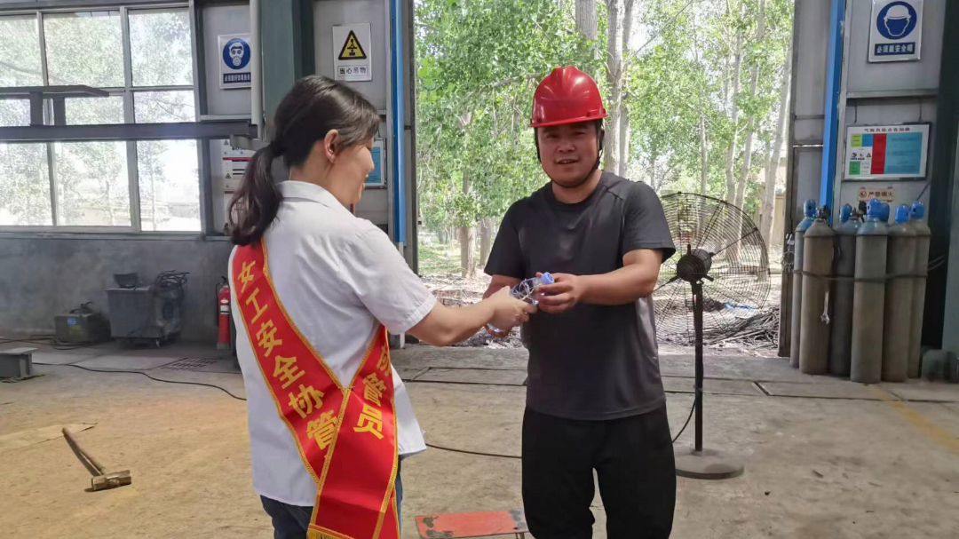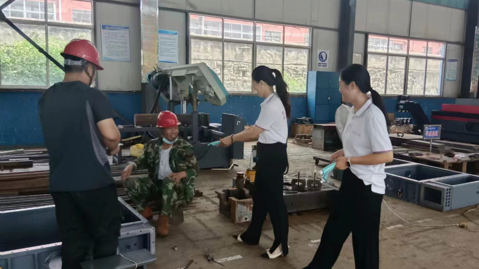 “师傅,您辛苦了,吃个冰棍降降温,天气热大家要注意防暑啊!”在公司电机车厂、防水门厂、金属网厂等一线车间,群监员、协管员每到一处都热情地为坚守一线的职工送上绿豆水、老冰棍、矿泉水等防暑降温物品和《防暑降温小妙招》宣传单,并不断叮嘱大家要注意高温防暑,安全作业。