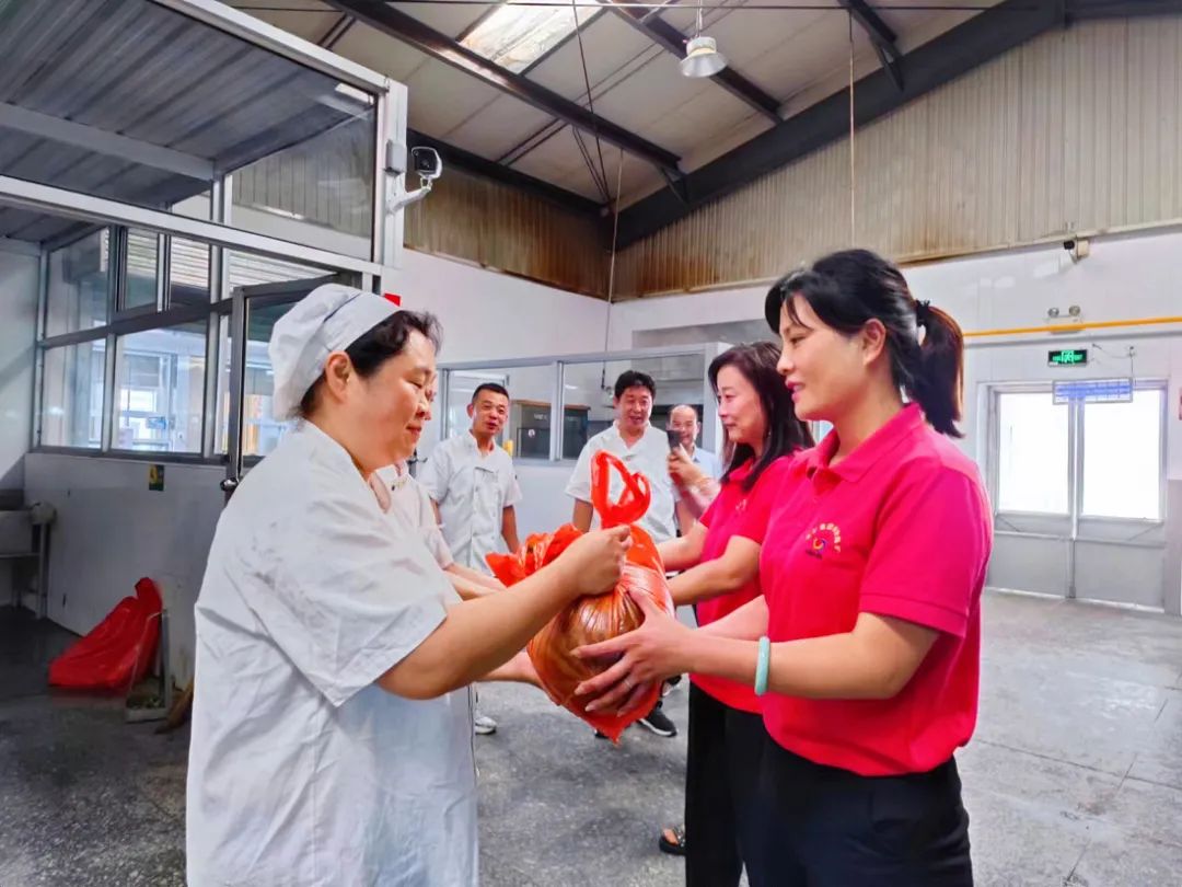在井口送清凉的同时,巾帼志愿者们分别前往支护材料加工基地、物业公司洗浴中心洗衣机房、环卫队值班室,馨膳园操作间等岗点,为忙得热火朝天的职工带来同一份关爱。