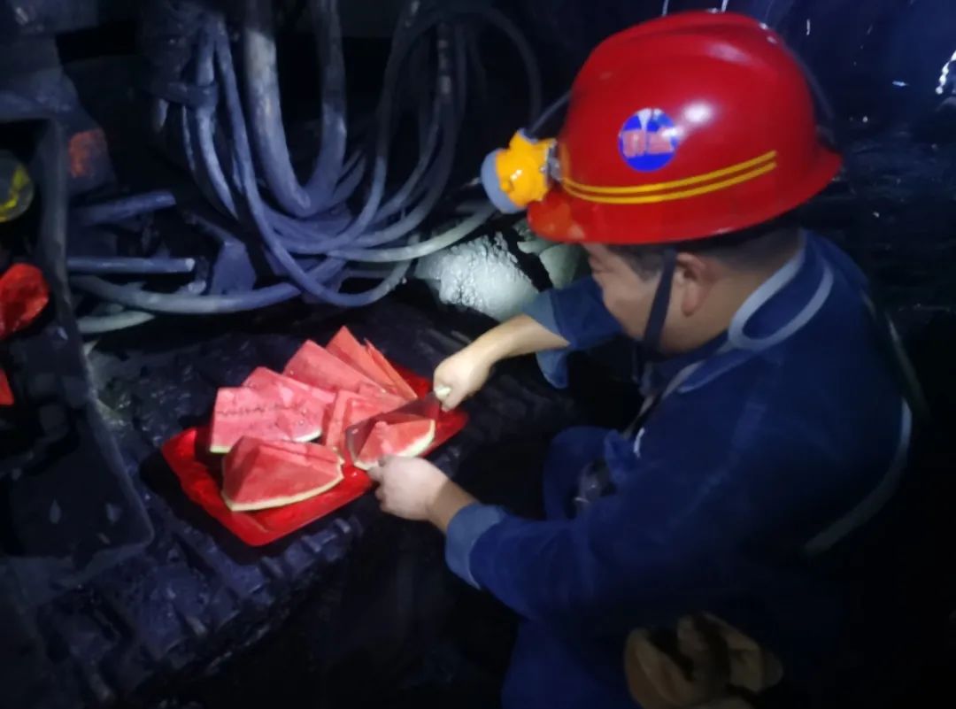 “在百米井下,喝上一口绿茶,吃上一块甜西瓜,这感觉真是太幸福了!”