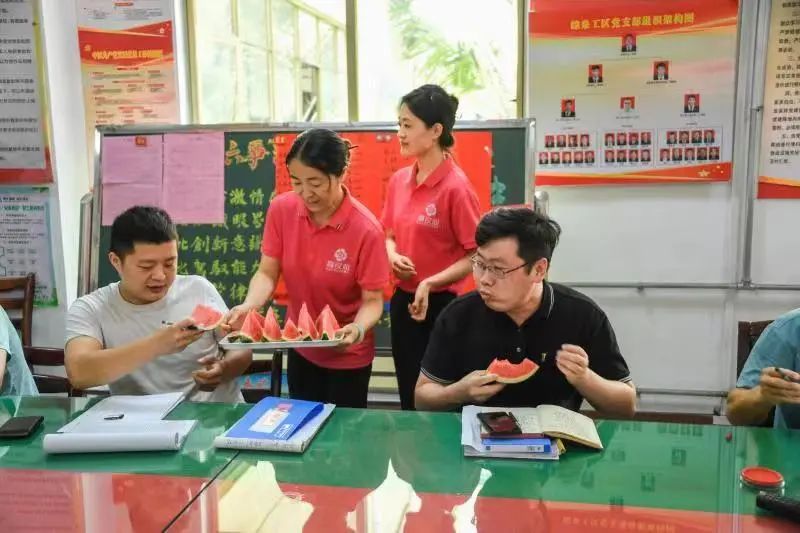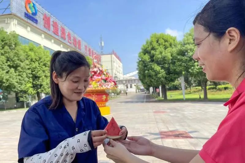 “高玫心”带着组织的关爱,进区队、进岗点、进车间、进现场,将西瓜、绿茶等防暑降温物品送到了职工手中,并亲切嘱咐职工师傅注意防暑降温,确保平安度夏,保证安全生产。一块块爽口的西瓜、一句句温馨的话语,饱含着广大职工家属对安全生产的殷切期盼。