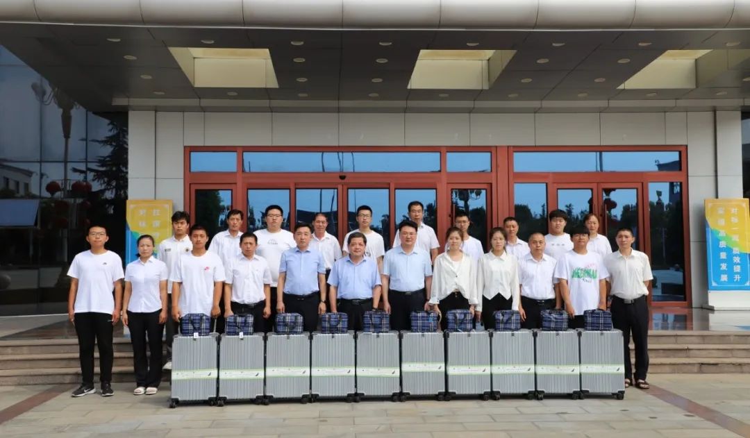 座谈会后,公司领导向考取大学的职工子女代表发放了奖学金和旅行箱,并合影留念。
