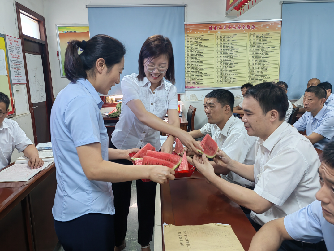 活动中,女工协管员宣读了给综采二区职工师傅们的一封慰问信,并与在场职工进行了亲切的交谈,详细了解他们在生活、工作中遇到的困难和问题,叮嘱他们越是困难越要保证安全,确保过断层攻坚战的全面胜利。安全知识有奖竞答是职工师傅们最喜爱的环节。只见他们踊跃抢答,在欢快轻松的氛围中接受安全知识教育。一块块甘甜的西瓜、一个个可口的平安果递到一线职工的手中,将关怀与温暖送到职工们的心坎上,送上了女工协管员的美好祝愿。