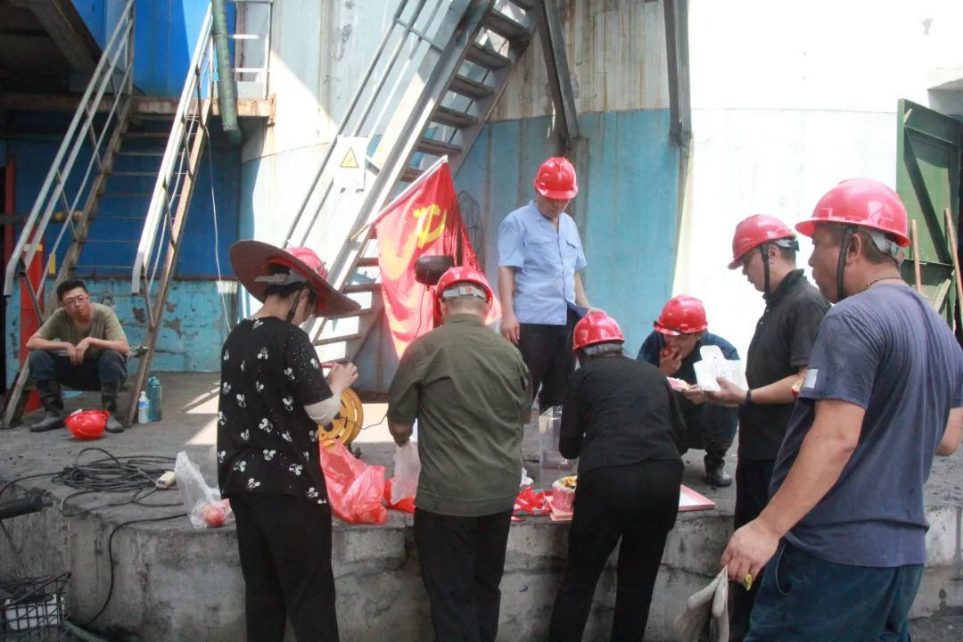 来到该厂原煤仓下,由于近期井下煤质较差,造成原煤仓下突发淤煤较多,一支由厂四个车间20余名党员骨干组成的志愿服务队,正在挥汗如雨、突击清理、埋头大干。一块块甜软的蛋糕,一个个鲜亮“寿桃”,一句句亲切的问候,一声声温馨的祝福,让现场的党员职工切实感受到了大家庭的温暖,激发了工作热情,鼓舞了干劲。