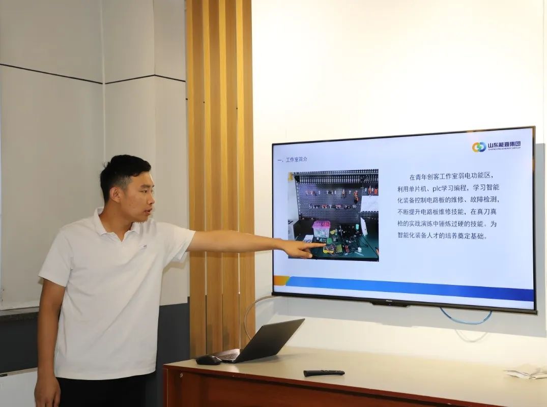在智创基地活动现场,刘兆雪创新工作室、孙延斌高技能人才工作室、刘峰工匠创新工作室、田堂省劳模创新工作室、郭莹巾帼创新工作室、胡全创客工作室共6位相关负责人分别以PPT的形式介绍了工作室的基本情况、标志设计理念、近年来创新工作室在工作方面完成的项目和取得的成绩、创新工作室核心成员及各个创新项目与工作室管理情况。