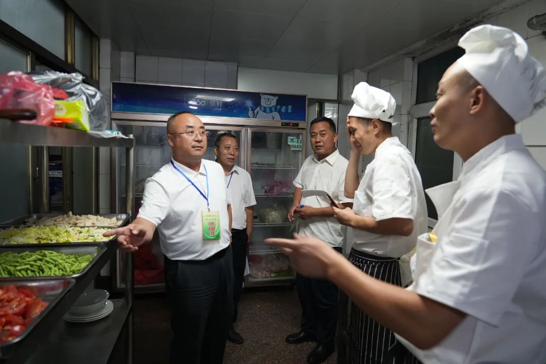 在食堂巡视现场,职工代表先后来到库房、操作间、消毒间,认真查看了原材料进货渠道、食品保质期、餐厅后厨卫生、人员持证上岗等情况,并针对饭菜质量及价格进行了问询调查。