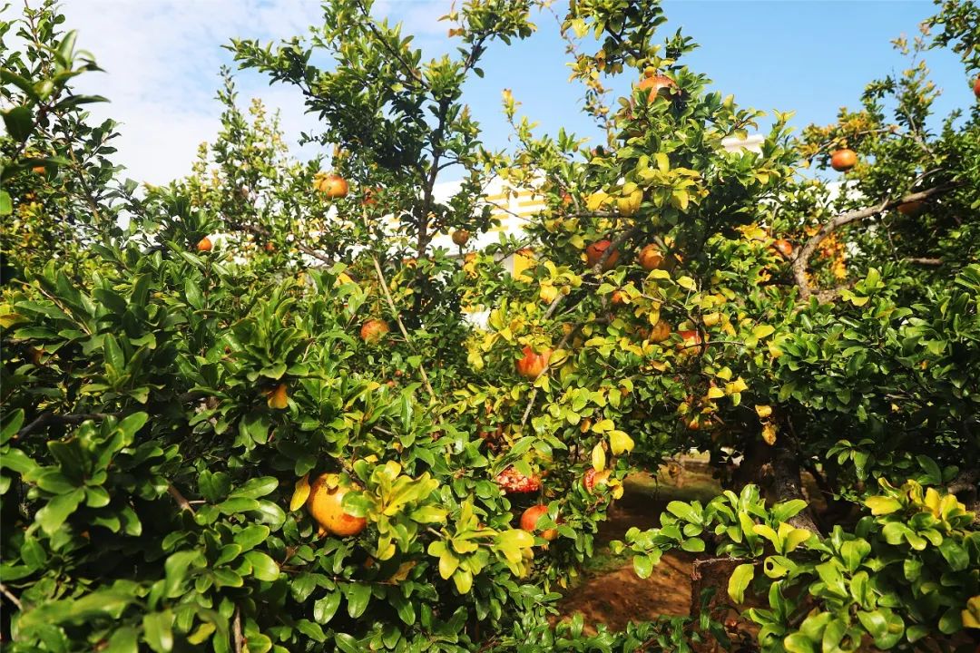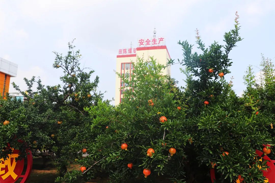 正值金秋时节,田陈煤矿“秋实园”内,绿林环绕间,大片石榴树自成一景,一棵棵石榴树枝繁叶茂、硕果累累、“丰”景如画,如同广大干部职工红红火火地生活。